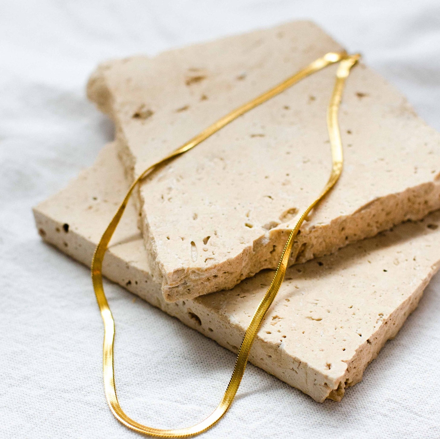 Our beautiful Herringbone Snake Chain is known and loved for its rich Gold colour and look.
